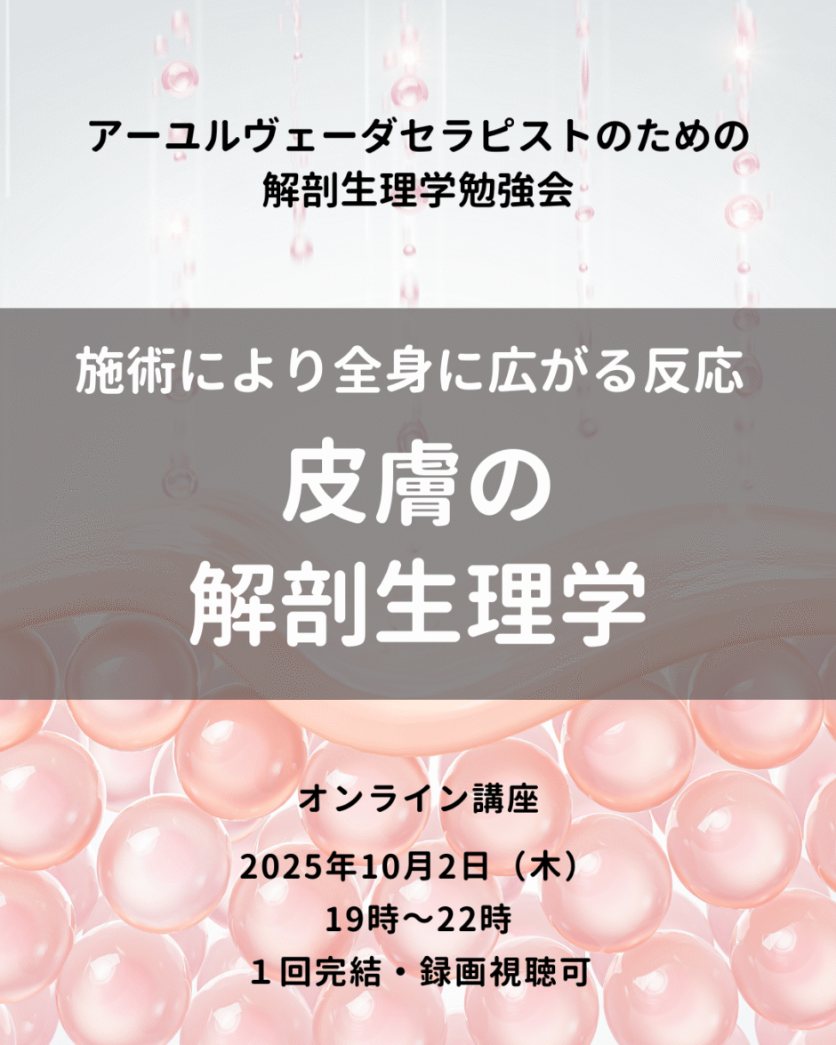 現代医学とアーユルヴェーダの視点から、皮膚に関する知識を学び、施術の理解を深めます。